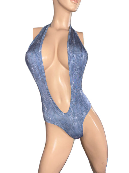 Sexy jean print on Lycra spandex fabric bodysuit. Size medium large. Made in America