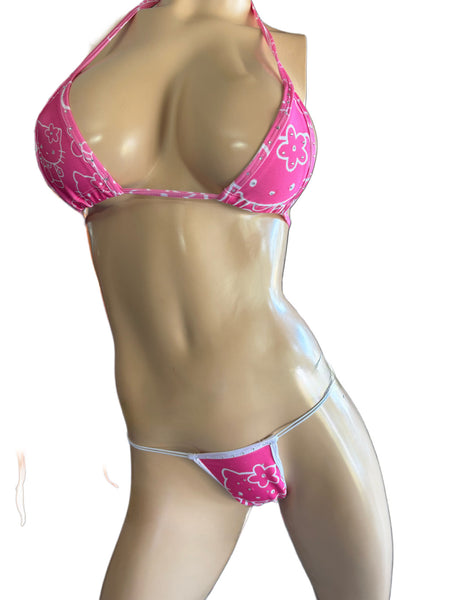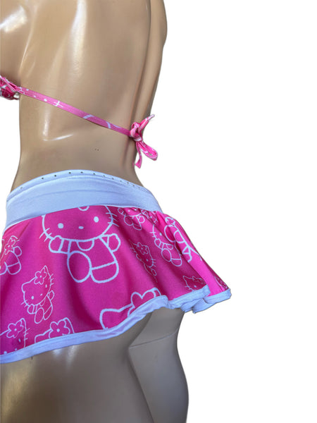 Sexy pink with white prints skirt with top and thong . Size small medium. Lycra spandex