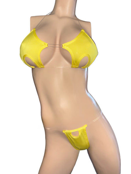 Sexy star style top with thong and clear elastic. Size small medium . Lycra spandex fabric
